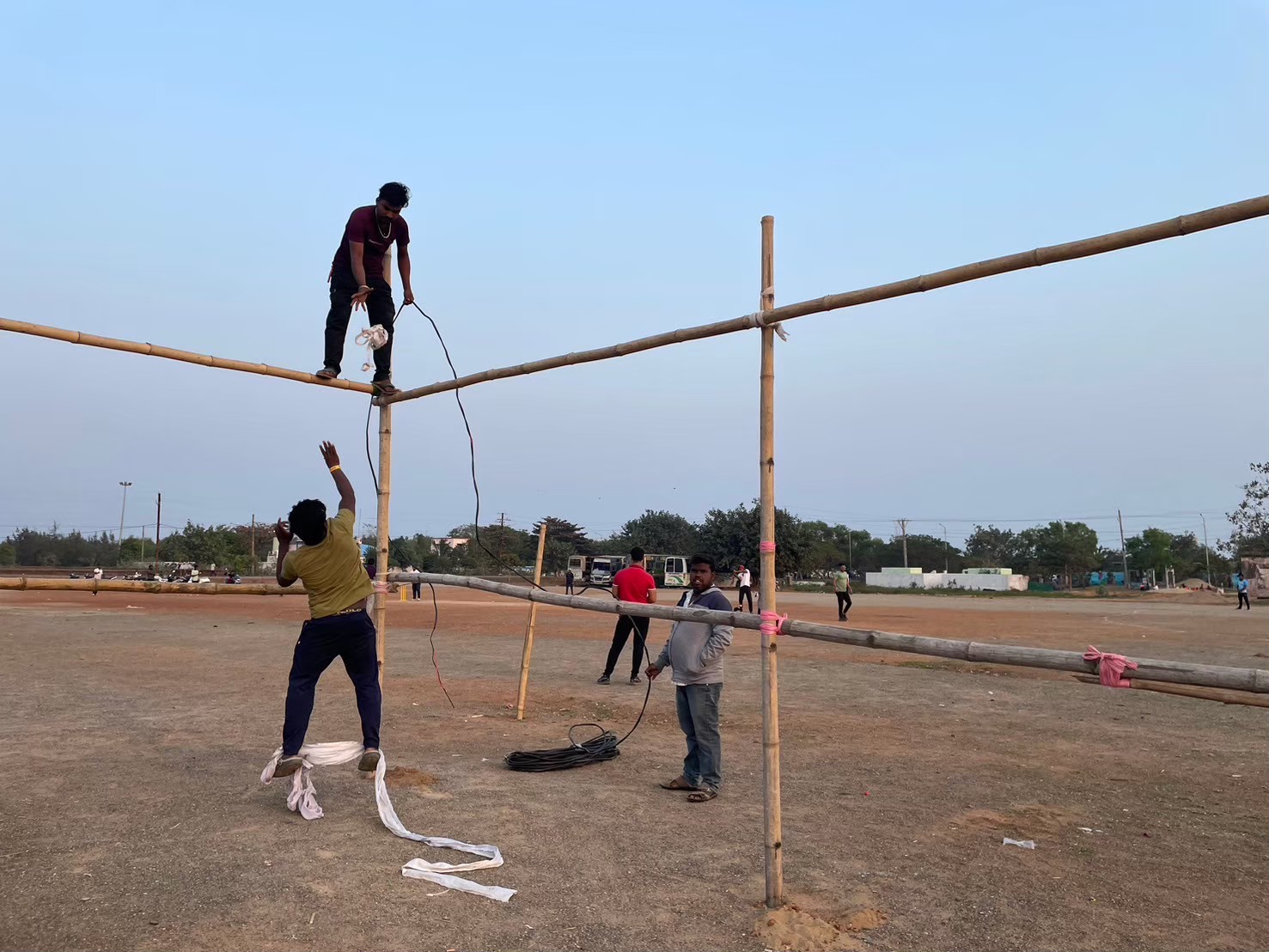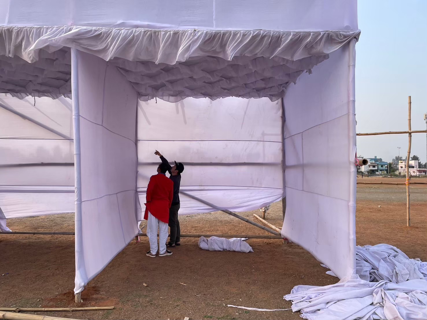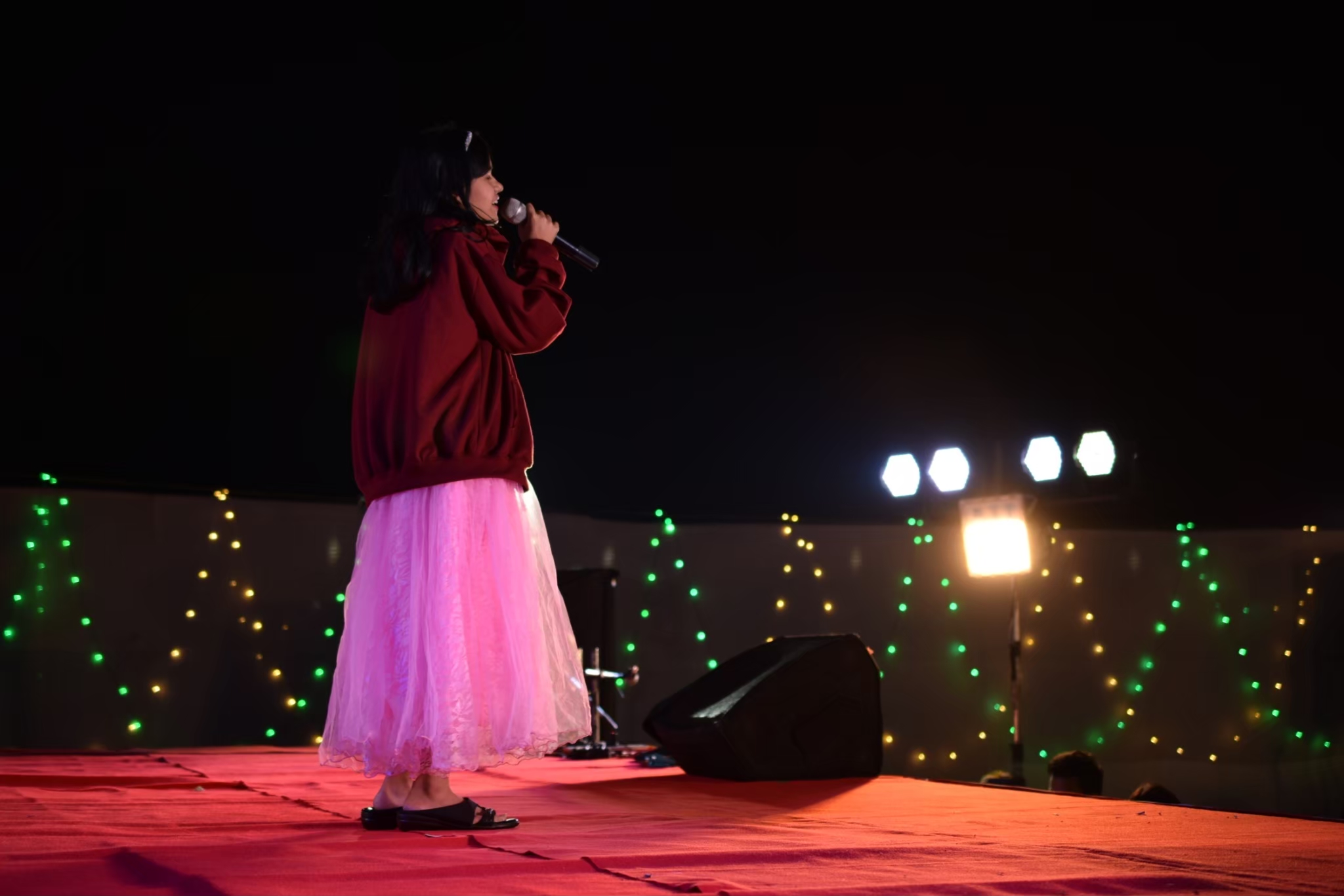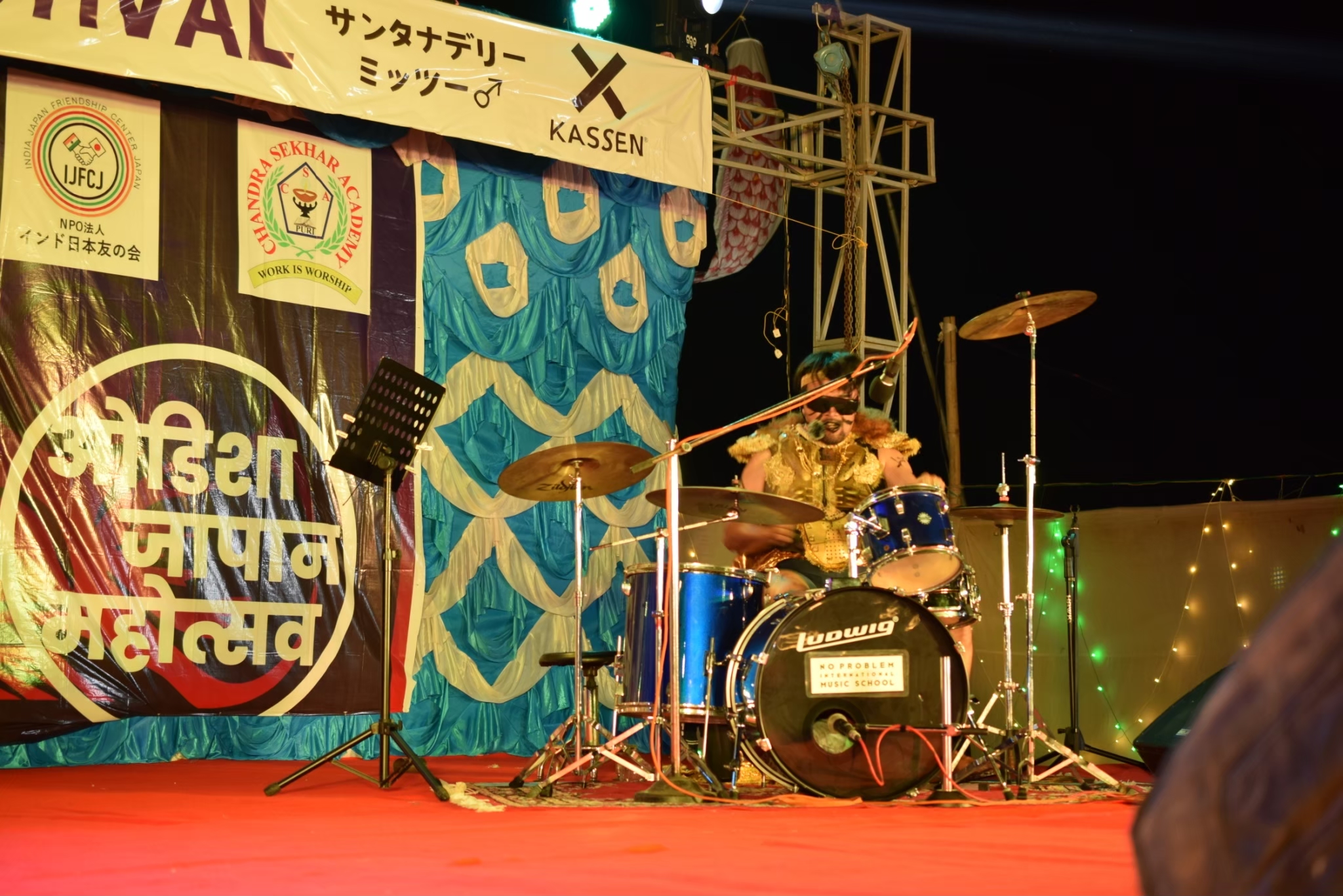 ドラムと一緒に糸とヒンディー語の曲を歌いました
