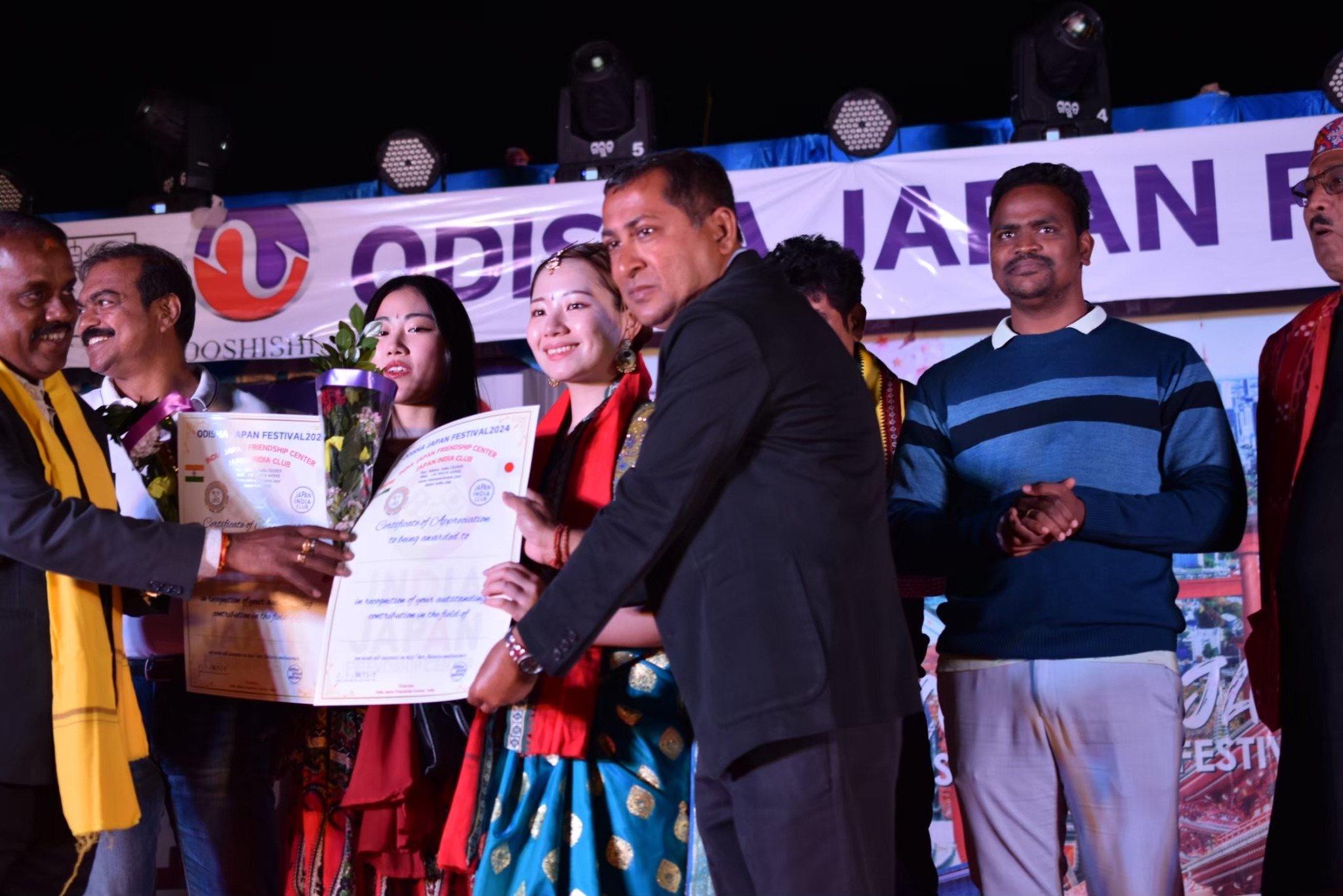 インディアジャパンフレンドシップセンターのチェアマン、トゥンナさんから感謝状の授与。許可から申請から本当に毎年お世話になっています。ありがとうございます。