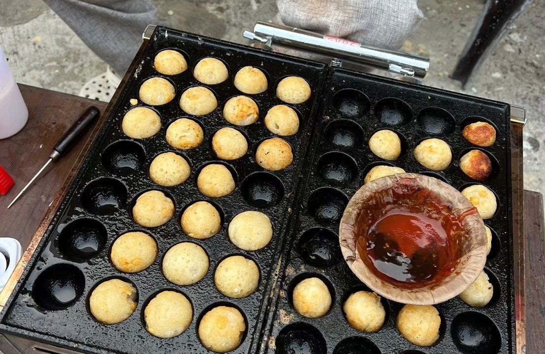 このお父さんも子どもも初めて食べるたこ焼きだと思います。嬉しいです